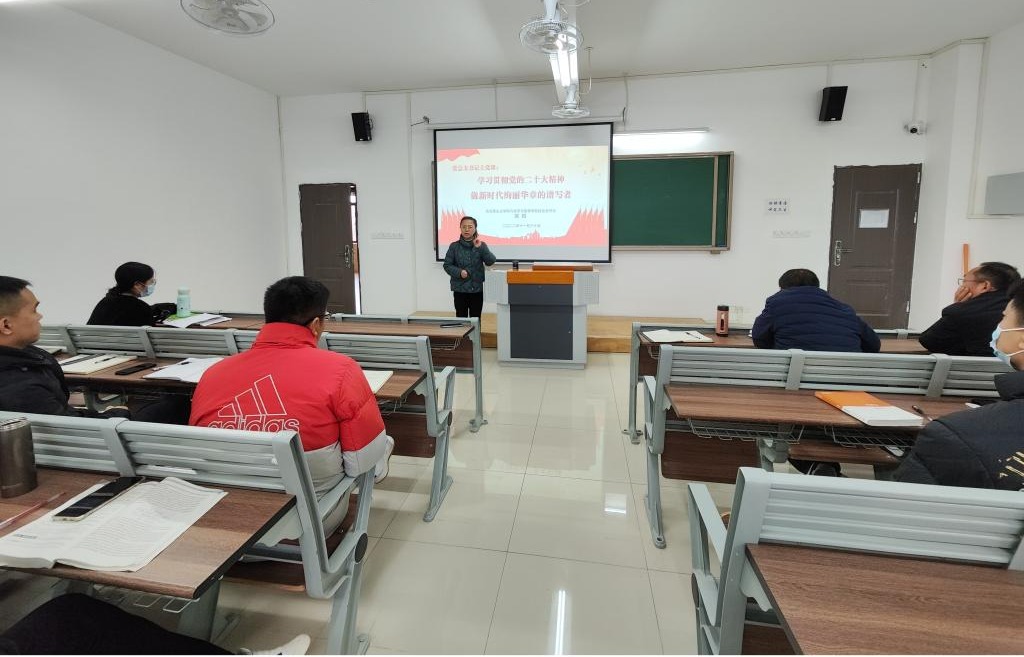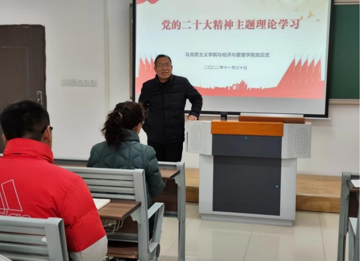 为深入学习宣传贯彻党的二十大精神,切实把思想和行动统一到党的二十大精神上来,引导全体党员干部、教师积极响应时代呼唤,紧密团结在以习近平同志为核心的党中央周围,深刻感悟思想伟力,领悟大会精神。11月30日下午,qmh球盟会亚博网址与经济管理学院党总支组织开展了关于党的二十大精神主题学习活动,由党总支书记吴玲以“做新时代绚丽华章的谱写者”为主题,在二教421为全体教师上了一堂生动且深入的专题党课。
