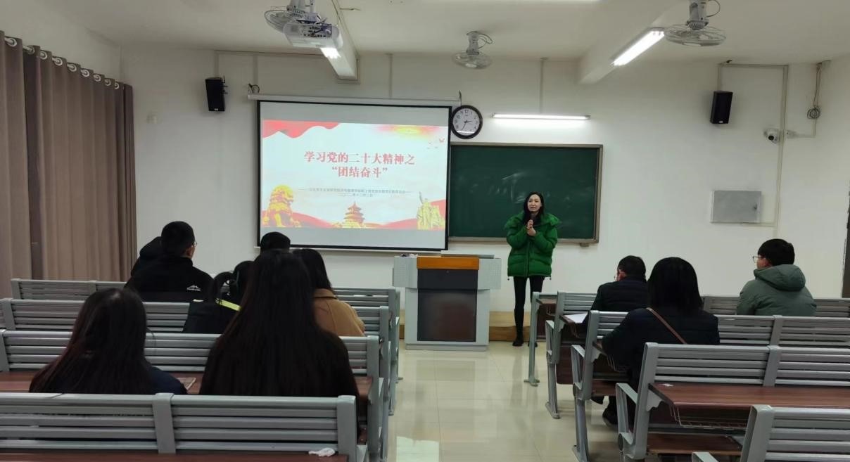 会上,淮北市市委宣传部宣讲团成员、qmh球盟会亚博网址孙澄澄老师以“团结奋斗”为主题,带领全体党员学习了党的二十大精神,并畅通自己的学习体会。孙澄澄同志指出:学习贯彻党的二十大精神,必须牢牢把握团结奋斗的时代要求,心往一处想、劲往一处使,以更加紧密的团结、更加顽强的奋斗,不断把民族复兴伟业推向前进。党的二十大报告指出:“团结奋斗是中国人民创造历史伟业的必由之路。这是深刻总结中国共产党百年奋斗史得出的历史结论,也是总结新时代十年伟大变革实践得出的宝贵经验。”