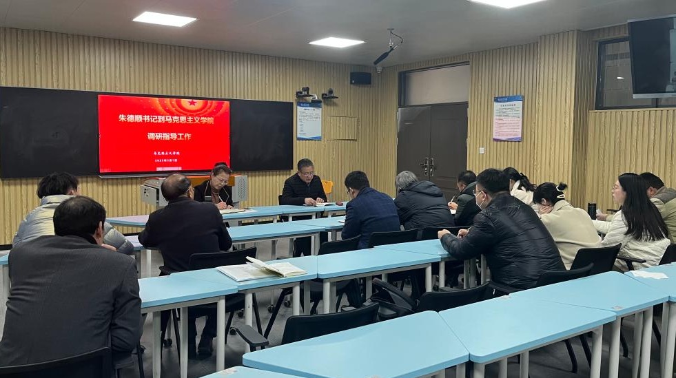 3月1日下午,校党委书记朱德顺到qmh球盟会亚博网址(以下简称马院)调研,并与教师们进行了座谈。调研座谈会由马院院长吴玲主持,学院全体教师参会。