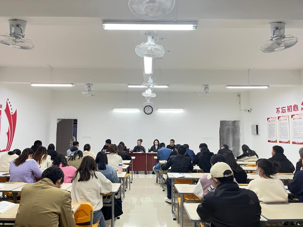 接着,吴玲向各位教师传达了省委教育工委和学校关于主题教育动员会的精神,以及学校关于主题教育学习工作的具体实施方案。吴玲围绕学习贯彻习近平总书记关于主题教育的重要讲话精神和学校党委部署要求,就两院高质量落实开展好主题教育学习工作提出了三方面要求。一是要将深入开展学习贯彻习近平新时代中国特色社会主义思想主题教育作为一项重大政治任务来完成,加强组织领导,立足学院实际,落实学习环节,取得显著实效,结合工作和思想实际形成总支部主题教育的实施方案;二是全体教师要提高政治站位,深刻理解主题教育的重大意义。吴玲强调,系统深入学习习近平总书记重要论述,及时跟进学习习近平总书记最新重要讲话内容。把开展调查研究作为重要工作内容提上日程,聚焦提升教学和科研水平,真正做到学思用贯通、知信行统一。三是党员干部要带头开展主题教育学习,做好示范引领作用,推进学院主题教育的深入扎实推进,把开展主题教育同推动党建工作结合起来,确保两手抓、两促进。