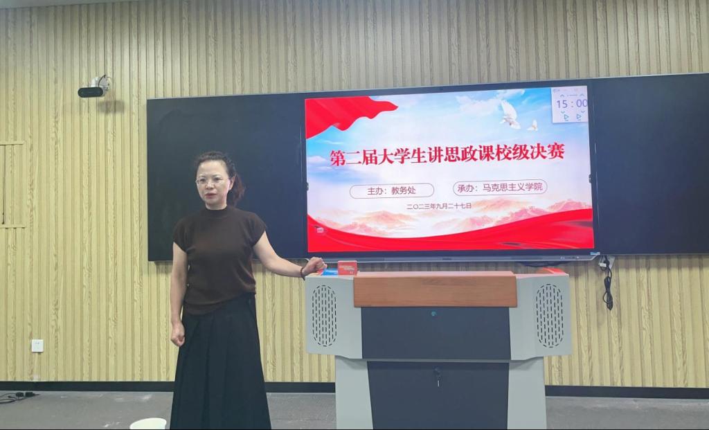 为深入学习贯彻习近平新时代中国特色社会主义思想主题教育,深化思政课改革创新,全面推进“大思政课”建设,落实拓展大学生参与思政课教学实践教学途径。根据《中共安徽省委教育工委关于组织开展第二届大学生讲思政课展示活动的通知》文件要求,在学校党委的高度重视及安排部署下,由教务处主办,qmh球盟会亚博网址承办的第二届大学生讲思政课比赛校级决赛于2023年9月27日在一教210智慧教室顺利举办并取得圆满成功,并经过精心的专家指导和材料把关于10月15日上报6组同学参加省级片区赛。