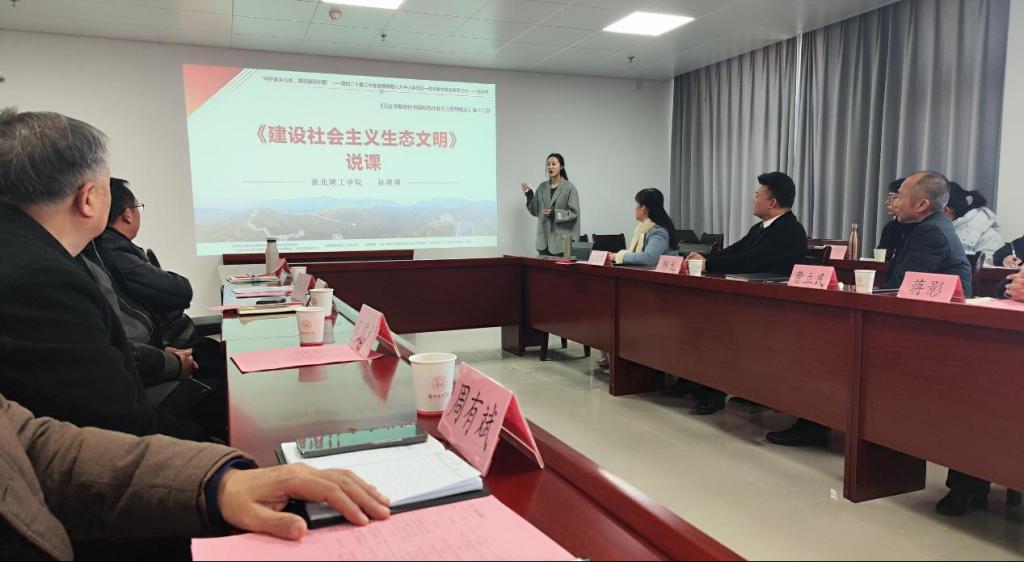 本次联合教研活动以“党的二十届三中全会精神融入思政课”为主题,由来自大中小学各学段的四位思政课优秀教师代表分别围绕“习近平生态文明思想”中的教学内容进行了“同课异构”教学设计展示。杜集区朱庄实验小学的赵俊淇老师以《辽阔的土地》为题,从我国幅员辽阔的国土导入,结合多种教学手段进行了小学段教学展示。杜集区石台实验学校吴可可老师通过案例式教学形式,展示了题为《共筑生命家园》的初中段教学设计。开渠中学的蒋迎秋老师以《践行两山理念,打造幸福宜居环境》为题,结合当地乡土文化特色融入思政课,以座谈交流的形式进行了高中段的教学设计。最后,球盟会qmhqmh球盟会亚博网址骨干教师孙澄澄进行了大学段的教学展示,她通过从理论到实践,从国内到国际,系统地阐述了一个完整的生态文明建设框架,展示了《建设社会主义生态文明》这一章节的教学设计。