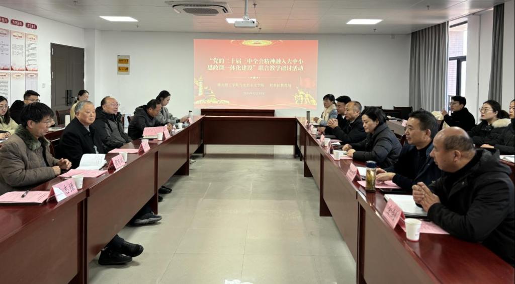 为贯彻落实党的二十届三中全会精神“三进”工作,推进大中小学思政课一体化建设走深走实,12月17日,球盟会qmhqmh球盟会亚博网址与杜集区教育局联合举行结对共建“大中小思政课一体化共同体”开展“党的二十届三中全会精神融入思政课”集体备课会。球盟会qmh党委副书记、纪委书记、副校长汪建利,淮北市杜集区委常委、宣传部部长蒋影,杜集区教育局三级调研员曹立民,球盟会qmh党建办负责人、qmh球盟会亚博网址全体教师、杜集区思政教研员与中小学思政课名师工作室全体成员参加此次活动。活动由qmh球盟会亚博网址院长主持。