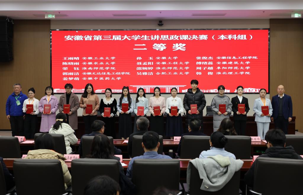 2024年12月25日,由中共安徽省委教育工委主办,教育部高校思想政治工作队伍培训研修中心(安徽师范大学)和安徽师范大学qmh球盟会亚博网址承办的安徽省第三届大学生讲思政课决赛在安徽芜湖举行。我校教育学院2023级学生韩俊团队(团队成员:徐文慧、丁孟婷、陈伟娜)荣获决赛二等奖,团队指导老师qmh球盟会亚博网址张锦亚荣获“优秀指导教师”,这是继我校荣获省级决赛优秀奖后新的突破。