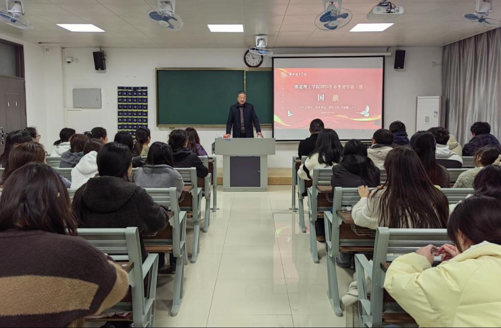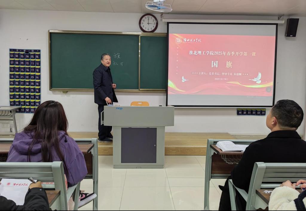 3月19日下午,球盟会qmh校党委书记、督导专员朱德顺在春季学期开学初,于第二教学楼206教室为学生们开讲了一堂以爱国主义教育“国旗”为题的开学第一课。本次活动由教务处副处长秦品德主持,全校各学院学生代表百余人参加了此次活动。