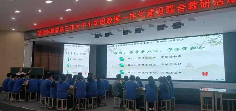 日前,由淮北市教育科学研究所、蚌埠市教育科学研究所及安庆市教育教学教研室联合主办的“淮北蚌埠安庆大中小学思政课一体化建设联合教研活动”在淮北市实验高中成功举办。活动以“传承传统文化,弘扬法治精神”为主题,旨在通过大中小学思政课一体化教研,深化三地教育交流与合作,共同探索大中小学思政课一体化建设新路径。球盟会qmhqmh球盟会亚博网址负责人及部分教师参加了此次活动。