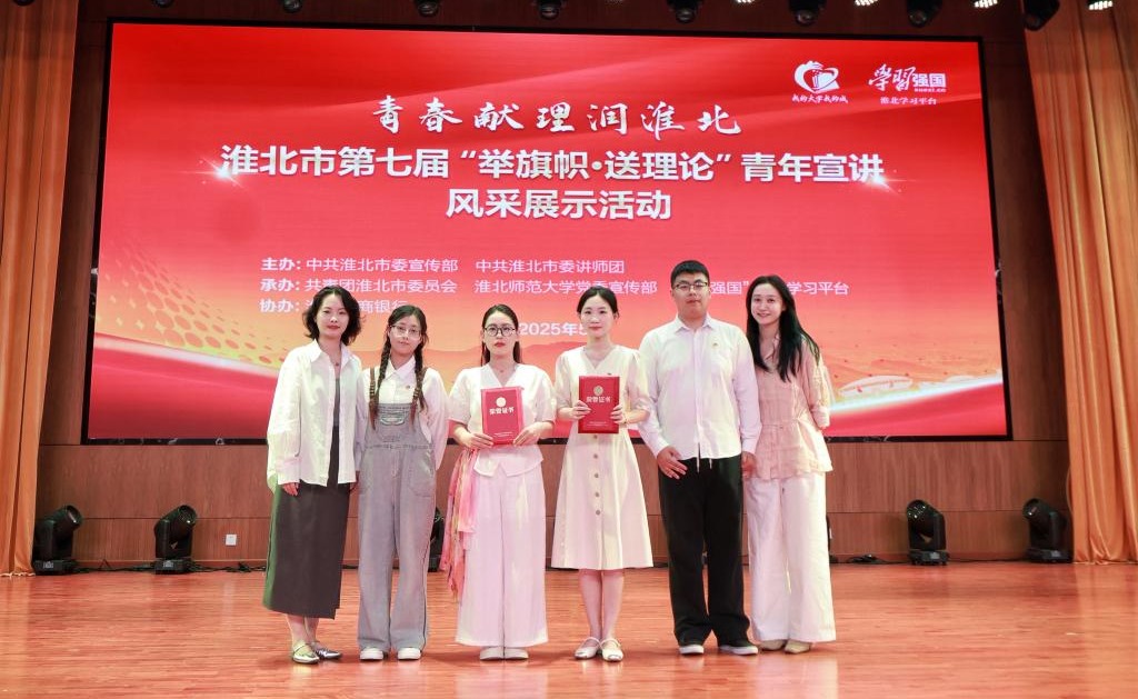 5月28日,由市委宣传部、市委讲师团等单位组织的“青春献理润淮北”淮北市第七届“举旗帜・送理论”青年宣讲风采展示活动在淮北师范大学举行。15组宣讲队以脱口秀、情景剧等创新形式,将党的创新理论化作时代强音,让思想的火炬在青春的舞台上熠熠生辉。