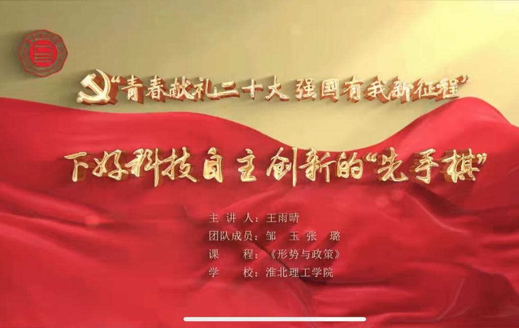 近日,安徽省首届以“青春献礼二十大,强国有我新征程”为主题的大学生讲思政课片区赛圆满落幕,经皖北片区赛激烈角逐,由我校qmh球盟会亚博网址孙澄澄老师指导,经管学院选送的王雨晴同学团队主讲的思政公开课《下好科技自主创新的“先手棋”》喜获二等奖,并将代表学校参加省级决赛。